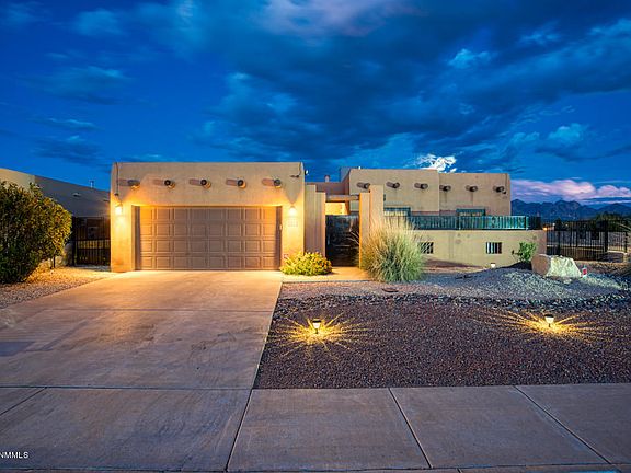 Don't miss this 4 bedroom, 2 bath home with awesome views of the Organ Mts. Beautiful kitchen has 2 breakfast bars, eating area, pantry, granite counters, skylight, 6 burner gas stove top, and beautiful tile back splash plus dining area!. Living room has tiled floors & baseboards and gas fireplace. Family room has tile floors, wood ceiling & windows to see the mountain view! Family room is also has separate heating and cooling. Large Master BR. Master bath has double sinks, jetted tub, tile shower stall & walk-in closet. All other BR's have tile floor & ceiling fans. Skylight in hall bath! 2 car garage has skylight, and outside you will find Courtyard entry, covered patio & easy care landscaping. Also there is a shed that has entry doors on either side for easy access. Enjoy your morning coffee watching the sun come up! Call for your showing today!!