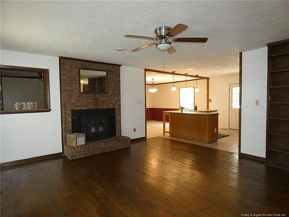 Ranch Style Home that Sits on of an .57 Acre in Hope Mills~NEW CARPET IN ALL BEDROOMS! This 4 Bedroom 2 Bath Home Won't Last~Walk up to the Covered Front Porch and Into a Large Foyer~Family Room w/Built In's and a Wood Burning Stove~HUGE Kitchen Island w/Sink and Seating for Bar Stools, Tile Floors, Double Oven, Glass Stove Top, All Stainless Steel Appliances Including Refrigerator~Large Dining Room area that leads into another Room Perfect for an Office or Kids Playroom~Large Guest Bedroom off the Kitchen w/laminate Flooring~Walk down the Hallway to the 2 Other Guest Bedroom and Guest Bathroom~Laundry Rm w/Extra Cabinets for Storage~Master Bedroom w/Ceiling Fans, Doors that Lead out to the Enclosed Porch and a On Suite Bath w/Walk In Closet~Backyard is a Entertainers DREAM~There are two Decks with a Covered Breezeway Sep the Spaces, Fenced Yard, Fire Pit and a Outdoor Grilling Area~Lg 2 Car Detachable Garage sits Outside the Fenced Area~Mature Trees Line this Yard for Privacy!