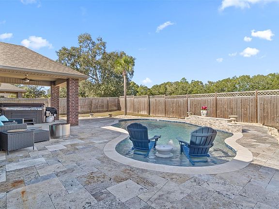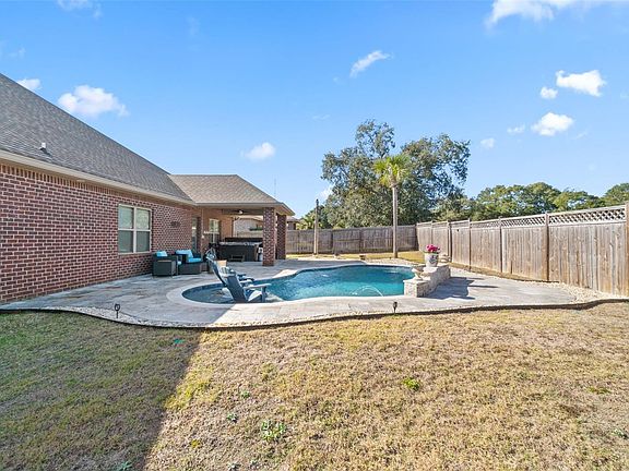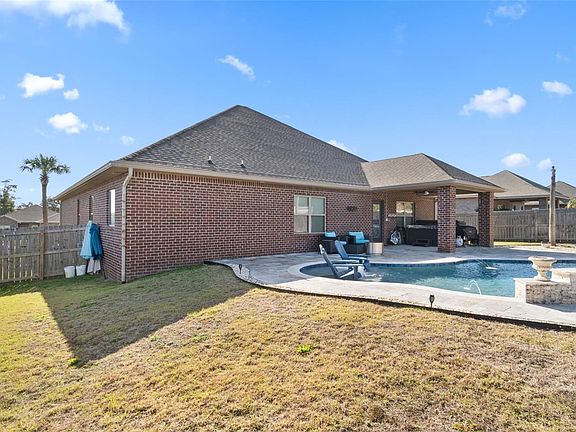 Exceptional all-brick Brookstone home featuring resort-style outdoor living with a private gunite saltwater, ozonated pool and a separate 5-seat hot tub with lounger, located just minutes from NAS Whiting Field and historic downtown Milton. This well-maintained home offers 4 bedrooms and 3 full baths with an open split floor plan, 9-foot ceilings throughout, a formal dining room, and a flexible fourth bedroom suitable for a study or guest room. The kitchen opens to the family room and overlooks the pool area, creating an ideal flow for everyday living and entertaining. Kitchen features include granite countertops, custom backsplash, stainless steel appliance package, center island, recessed lighting, and upgraded finishes. Outdoor living is a standout feature, with a covered 14x12 porch with ceiling fan and light overlooking the pool area. A pool heater is available but not currently connected. The independent hot tub seats five and includes a lounger. Additional upgrades include upgraded tile flooring, electric wall fireplace, hurricane-rated garage door with opener, enhanced light package throughout, upgraded door and cabinet hardware, sprinkler system for the front and side yard, and a state-of-the-art security system with cameras. The HVAC system has been recently serviced as preventative maintenance. This two-owner home has been meticulously cared for and is smoke-free and pet-free. Move-in ready and a must-see to fully appreciate the condition and outdoor living features.
