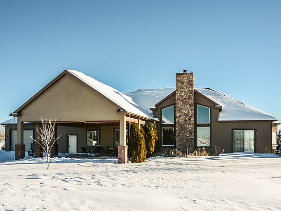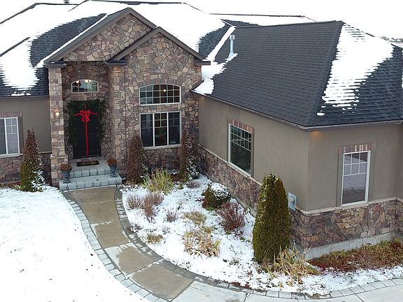 This breathtaking, designer inspired home provides the perfect mix of elegance & functionality. As you step into the grand entry you are surrounded by rich wood columns, warm neutral colors & gorgeous hardwood flooring that gives way to both a formal dining room & great room showcasing a beautiful built-in entertainment center & rock fireplace. The gourmet kitchen is a chef's dream - featuring white cabinets, an amazingly detailed island, commercial-grade appliances & a large informal dining area. An oversized master suite is a relaxing get-a-way with a stacked tray ceiling & enormous bathroom featuring dual sinks, a huge tub, walk-in shower & massive closet. Finishing out the main level is an additional bedroom, a 2nd full bath, a mud room with lockers & an enviable laundry room. The finished basement includes 3 spacious bedrooms, 2 full baths, a very large family room (with wet bar), an in-home office & loads of storage. An amazing covered patio showcases a gorgeous tongue & groove ceiling, while a 4-stall garage - with drive-thru bay, as well as RV parking PLUS an additional concrete pad in the back guarantees there will be no shortage of room to store your recreational toys. You're sure to appreciate the stunning design & construction of this extraordinary home!