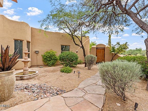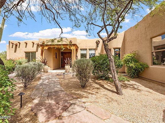 Stunning Southwest style home w/ spectacular mountain views! This charming 2,963 sq ft single story home offers 4 bedrooms, 3 baths, den/office, sparkling pool & private yard on almost an acre. Kitchen is a cook's dream featuring Granite counter tops/backsplash, Wolf stainless steel gas cooktop, double oven, wine fridge, walk-in pantry & wet bar. Eat-in kitchen is open to the spacious family room w/ beautiful Vega beams & cozy fireplace. Saltillo tile throughout the main living area & carpet in the bedrooms. Double doors lead to the large master suite w/ wood ceiling, fireplace & patio access. Master bath has double sinks, separate tub/shower & walk-in closet w/custom shelving. Step outside to cool off in the play pool or sit by the fire & take in the unobstructed views of Black Mountain! Your private oasis is complete w/extended covered patio, artificial turf, built-in BBQ & desert landscape. Huge laundry room offers sink, dog wash area, cabinets & washer/dryer are included. Oversized 3 car garage w/cabinets and low solar lease reduces monthly electric costs. Situated on a quiet cul-de-sac lot, you'll love the intimate gated community of Carefree Mountain Estates. Conveniently located near Cave Creek & Carefree close to shopping, restaurants, schools and the YMCA. Hiking & biking trails are nearby and under 30 minutes to Bartlett Lake or Lake Pleasant.