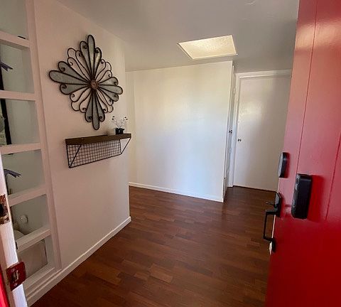 Super handy location for almost any commute: UCSD, Fine Public and Private schools, Beaches, La Jolla, Downtown, Airport, UTC, Sorrento Valley Yet Walking Distance to Sprouts, Worship, Exercise, Parks, Trails, Schools, Buses, Post Office, more. A house for busy Families and Groups: Quick in and out, Low exterior Maintenance, All appliances, double pane windows, super private, large deck back yard, No large window facing Street, great Curb Appeal, all hard flooring, Abundant Street Parking, Very Low Traffic street, Tesla charging Outlet FOUR BEDROOM, TWO BATH, TWO CAR ATTACHED GARAGE WITH APP CONTROLLABLE OPENER, LIGHTED WORKBENCH, DEEP UTILITY SINK W/FAUCET AND SOME SHELVING AND OVERHEAD STORAGE, LADDER EVEN SUPPLIED. No central air but Ocean Moderated Climate and Fans, rarely needed, also supplied. Most all appliances close to Brand-New, including SS side-by-side Fridge, Responsive Maintenance support. One year lease. Renter pays all utilities.(Need to be in tenant's name within 3 business days from lease start date.) Credit checks asked for for all persons over 17. 9Zillow application fee includes a credit check fee. Bo smoking. Abundant street parking if needed. Animals at $50 fee each per month. Tenant responsible for weed control in all gravel areas and planters. Basically no-water landscaping. Landlord can help with supplying concentrate glyphosate/RoundUp and a pump sprayer upon request. Tenant responsible for neat appearance at all times.