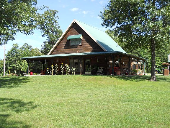 Beautiful 1 1/2 story 4 bedroom log home with vaulted ceilings and pine interior siding. Gas log native stone living room fireplace. Wrap around covered porches. Stainless steel kitchen appliances. Anderson crank-out thermal windows. 8.8 very pretty acres, fenced and cross fenced into two fields. Insulated 30x40 detached 3 car garage with loft storage. 40x60 metal building with a 20x40 studio apartment and an adjoining 20x60 drive through workshop/garage with hay and machinery storage areas plus a10x60 lean-to. 2 storage buildings, 2 loafing sheds. Excellent 24x40 garden spot. Attractive landscaping. Blacktop driveway. Located in a gated community not far from town.