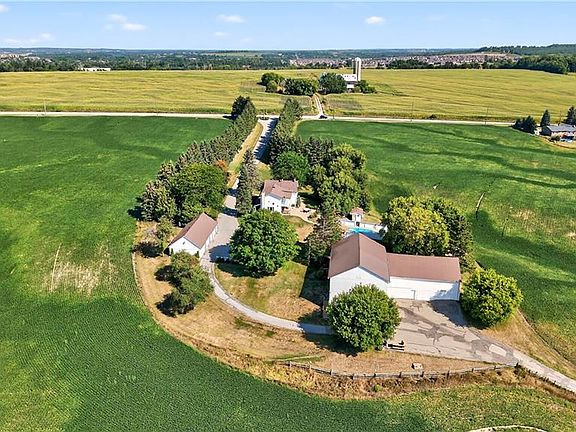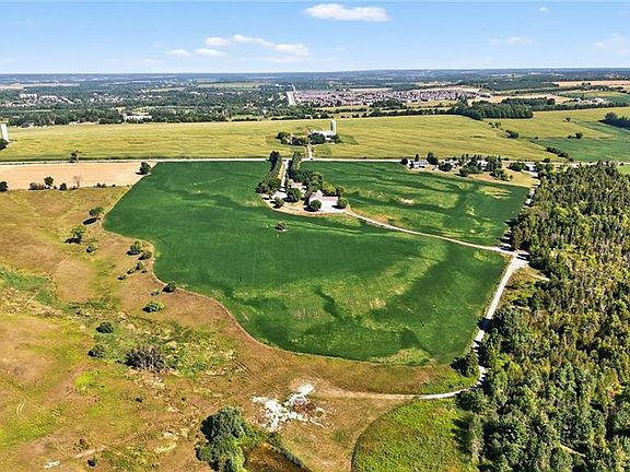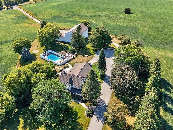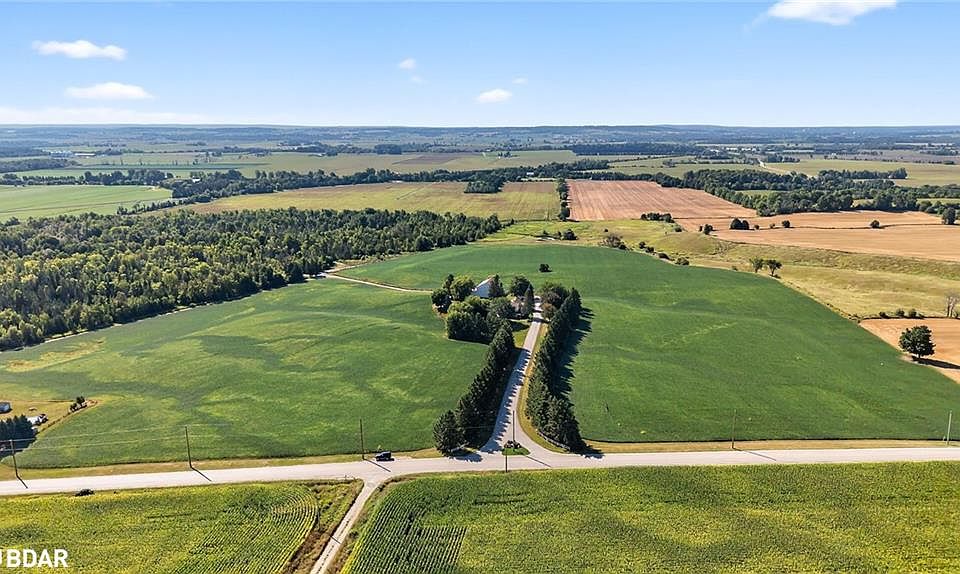 A Private Country Paradise. Welcome to this exceptional 104-acre farm estate offering the perfect blend of functionality, natural beauty, and refined country living. Whether you're looking for a working farm, a private retreat, or a place to create lasting family memories, this meticulously maintained property delivers it all. Set back from the road you'll arrive via a long, paved tree-lined driveway framed by a classic white fence, leading to a manicured lawn and beautifully landscaped flower gardens. The mixed-use land offers productive cash crop fields, forested trails for hiking or ATVing, a private pond, and ample open space for recreation or expansion. The charming 4-bedroom home features a metal roof, covered front porch ideal for relaxing summer evenings, inviting living room with fireplace and walk out to patio, large eat in kitchen, formal dining room great for entertaining and grand primary suite complete with a 4-piece ensuite, wall-to-wall closet, and walk-out to a large private balcony. Outside, enjoy the fully fenced in-ground pool for warm-weather fun, complete with tiki bar. A classic barn, and a detached 4-bay garage offer ample storage and workspace. Dual access to the property provides convenience and flexibility. Whether you're seeking tranquility, an investment opportunity or a place to bring your rural dreams to life, this stunning property located close to the growing town of Alliston has it all. Don't miss this rare opportunity to own a piece of countryside perfection.