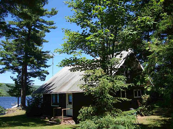 Swiss Chalet cottage on beautiful Lac La Belle with a view of the runs on Mt Bohemia Ski Hill. Tall standing Pine trees 2 car garage plus a guest cottage with bed and 1/3 bath. This three bedroom home has all glass front to deck and lake living room and dining open floor plan. It is as pretty as can be with main floor bedroom and full bath. Upper floor has a balcony to view 104' water frontage Mt Bohemia. Lac La Belle has advantage of a dock and boating with access through Bete Grise Channel to Lake Superior. Best of both worlds. Fully furnished. Adorable guest cottage.