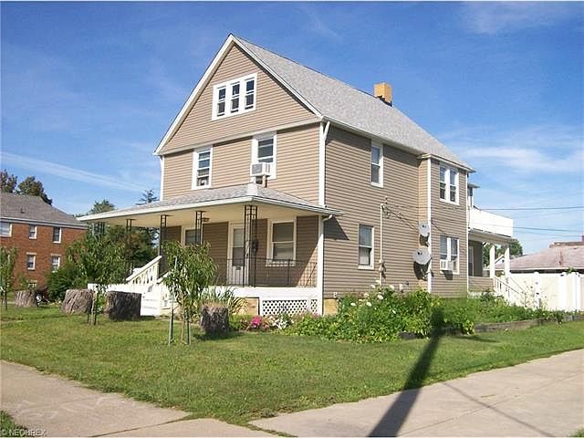 Large corner double lot. Corner of Dartworth and Ridge Rd. Newer roof tear-off, house and garage. Vinyl sided 2008. Some replacement windows up. Newer carpet up 2012. Some ceiling fans. Several porches, front, side, and back. Basement waterproofed. Built-in china cabinets. Walk-up attic.