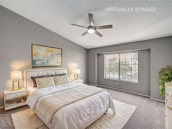 Gorgeous 2 bedroom townhome with a loft located in Spring Valley just a few minutes from Chinatown and Allegiant Stadium. The home has all new carpet and paint throughout. New stainless steel appliances in the kitchen and new lighting fixtures to finish this contemporary home. The primary bedroom has a den area with a gas fireplace and an ensuite bathroom with an all-new shower. The loft area gets great light and would be a great office or sitting room. Guest room is away from the primary bedroom and overlooks the front of the house. There's a private door to the guest bathroom from the guest bedroom too. The gated community has a pool for the residents and you'll have a personal covered patio where you can sip your iced tea and read a book.