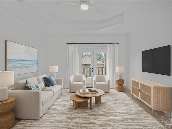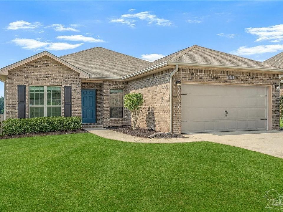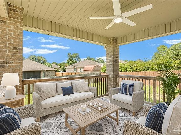 Located just 12 minutes from Whiting Field, this inviting 3-bed, 2-bath + study home sits on a large corner lot in desirable Rustic Ridge—with no HOA! Upgraded in August 2025, the home features fresh paint throughout, all-new ceiling fans, light fixtures, and brushed nickel kitchen and bathroom faucets. Stepping in to through the front door is a formal dining room, which can also serve as an office or flex space. The kitchen offers rich cabinetry, a separate pantry, ample counter space, and a breakfast bar, opening to a spacious living room with tray ceiling and new ceiling fan. French doors lead to a generous covered back porch with a new outdoor ceiling fan—perfect for relaxing in the fenced backyard. The primary suite easily fits a king sized bed and offers its own tray ceiling, a spa like bath with double vanities, garden tub and separate shower, and a large walk in closet. Two additional bedrooms share a full bath and sit on the opposite wing of the home. Additional highlights include 9-foot ceilings, ceramic tile in wet areas, fresh paint throughout, an indoor laundry room, and a finished 2-car garage with epoxy-coated floors and automatic opener. A licensed arborist has professionally landscaped the property trimming and shaping the front bushes so they're attractive and easy to maintain with freshly laid mulch. This move-in-ready home offers comfort, functionality, and curb appeal all in a convenient location near everyday amenities and local destinations. Virtual Tour: https://hollandmediallc.hd.pics/5978-Rustic-Ridge-Circle/idx