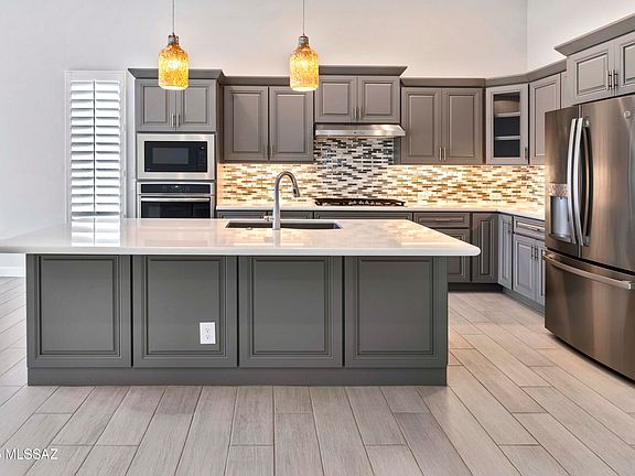 Soothing neutral color paletteBrick paver patioFully fenced yardLush landscapingExpansive islandPremium appliancesPlantation shutters