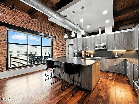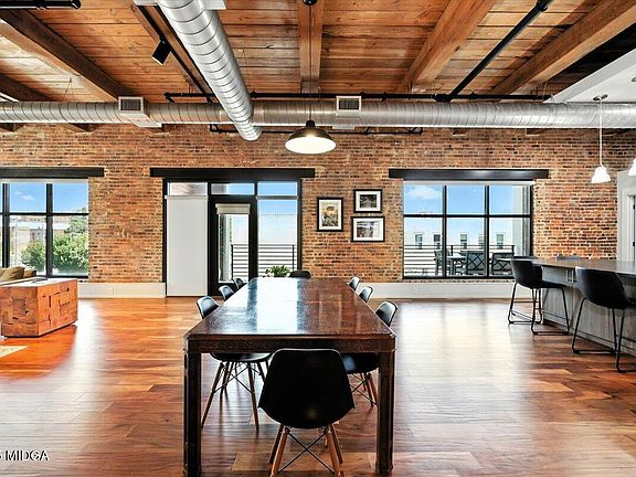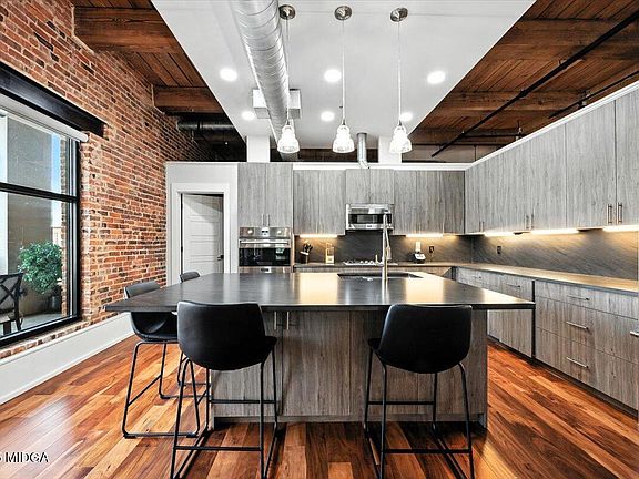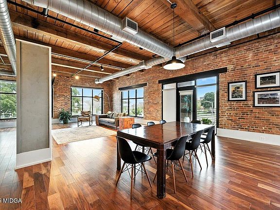 UNBELIEVABLE LOFT LUXURY IN DOWNTOWN MACON! You've never seen anything like this gorgeous loft in downtown Macon. No expense was spared from the design, to the materials and the finishes. While the building itself is over 100 years old these lofts are totally new construction and just finished a few years ago. Let me take you through a tour. You'll park your car in your own single car garage with an automatic door. You'll enter the private elevator lobby that only you and the 8 or so other residents use. Once on the 2nd floor you'll go through your door to your foyer, when you turn the corner the whole city opens up to you with 180 degree views of downtown Macon. The great room has soaring ceilings and you'll notice the exposed duct work and original wood beams and floors from above. The modern fireplace is glowing in the sitting area and then you decide to make dinner in the high end kitchen with all Viking stainless appliances from the fridge, oven, cooktop and dishwasher to the built in microwave. You might need some ingredients from the giant walk in pantry or decide to sit down in the dining area and enjoy the sunset from the floor to ceiling windows or let down the automatic shades to shut out the world after a long day. You clear the table and enjoy a glass of wine at the quartz island that could seat up to 8 or 10 people. It's time for a shower in the primary ensuite bath with a walk in shower incased in floor to ceiling marble and a glass door. The double vanity has plenty of room for all your toiletries and the walk in closet is professionally designed and holds all your clothes and room for more! The second bedroom with its own ensuite bath is always ready for guests or you could make it a home office/work out room, whatever you need! In the morning you enjoy that first cup of coffee on the balcony and turn on the exterior fireplace while taking in the views as Macon wakes up to start another day and you're right there to take it all in. This loft in addition to all the the living space also has more than enough storage both in the loft and in the garage.