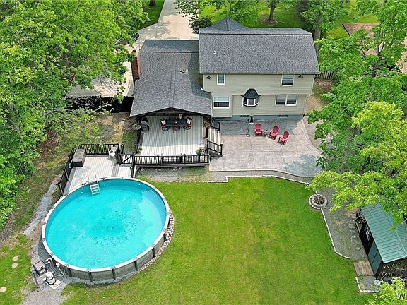 Welcome to 598 Baseline Road on Grand Island, where you live, work, play, AND vacation, all without leaving home! The handsome approach automatically draws you in and you know you're here to stay. The extra long and wide newer concrete driveway (2018) provides ample space for both occupants and visitors all year long. End of driveway has a half basket-ball court next to the garage with a professional glass backboard! Fantastic east-facing front porch provides enough space for the whole gang to hang out and enjoy nature. Through your front entrance you're greeted with a roomy foyer and bright living room with large bay window. Continuing through the first floor of your new home you'll discover a formal dining room; huge country kitchen with center island and loads of cupboards and large pantry; updated half bath; and spacious family room with skylight, gas fireplace (2020), and sliding glass doors leading outdoors. The second floor includes three oversized bedrooms and one full bathroom. The primary bedroom includes two closets, one of which is a walk in cedar closet. Jack and Jill style full bath provides entry from both the primary and secondary bedrooms. Full dry basement is partially finished providing additional entertainment space. The WOW factor here is all about the outdoors - just wait until you walk out onto your new deck - it'll take your breath away! Professionally installed DuraLife deck (2011) overlooks two gorgeous acres, along with a massive concrete patio with adjacent firepit, and a large shed (2014). Additional vinyl deck (2016) connected to main deck with locked gate to your above ground 27ft round pool (2016)! Brand new Hayward gas pool heater installed 2023. Don't forget about the attached 2+ car garage with extra storage 'up above' and new doors (2023). Updated mechanics include boiler 2009; electric panel 2016; Roof, gutters, soffits, and vinyl siding 2021; and HWT 2022! Square footage based on Agent & Seller's measurements.