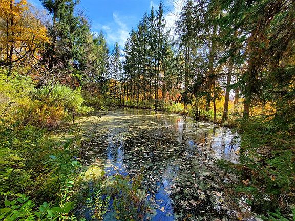 This parcel could be an ideal Catskills retreat property, complete with an established driveway, an electric pole at the parking/build/camp site, and a serene spring fed pond guarded by towering evergreens. There are multiple rock outcroppings and charming stone walls on the lot, which rises slightly from the private road without being too steep. There are two springs on the lot feeding the pond, and an older trailer that will require attention at the top of the driveway. There is a ROW road along the south of the lot providing easy access to the pond area. Located on a private and seasonal dirt road just minutes to the vibrant Village of Andes, about 20 minutes to the Pepacton reservoir, and 2.5 hours to the GWB.