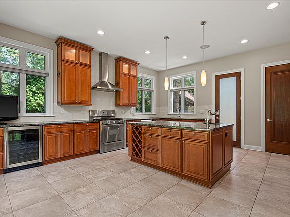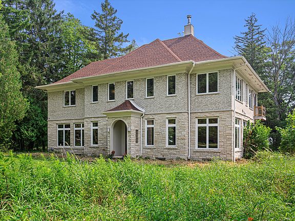 Experience unmatched privacy & luxury in this stunning 4,836 sq ft brick & stone estate, nestled on 8 wooded acres w/direct frontage on Lake Mich. Built in 2011 by a real estate developer for his own family, this custom-designed residence offers breathtaking lake views from every room. Inside, the home features 4 spacious bedroom suites each w/private baths & walk-in closets alongside 5 elegantly appointed baths. Expansive windows, hardwood floors throughout, mahogany millwork, granite countertops, stainless steel appliances, 2 balconies, & an open-concept layout connecting the living & dining areas w/nature & light. The main level includes chef's kitchen, private office, & spa-style wellness room facing the lake, complete w/sauna, shower, bar, & opt hot tub. Finished LL & 2 car garage.
