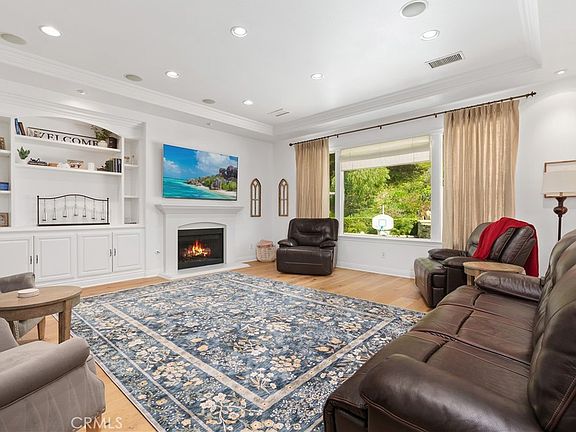Enter through a private, secure gated courtyard into a warm and inviting interior. Wide-plank hardwood floors flow throughout, leading your eye to the picture-perfect view of an 8-foot waterfall spilling into the spa. The spacious kitchen is a chef’s delight, featuring marble countertops, a Viking double oven and stove top, a farmhouse sink, and a casual eat-in area that opens seamlessly to the home’s main living spaces—ideal for entertaining and everyday living.This thoughtfully designed layout includes two bedrooms with their own en-suite bathrooms, while two additional bedrooms share a dual-entry bath. There's also a separate home office, complete with custom built-in desk and shelving, perfect for remote work or study. The primary suite is a private retreat of its own, featuring a cozy fireplace, a generous bathroom, and a large walk-in closet. Step outside to your backyard oasis, where peaceful surroundings complement a sparkling pool, relaxing spa, and built-in BBQ—perfect for gathering with friends or enjoying quiet evenings at home. There’s so much more to experience—schedule your private showing today and make this exceptional property your forever home.