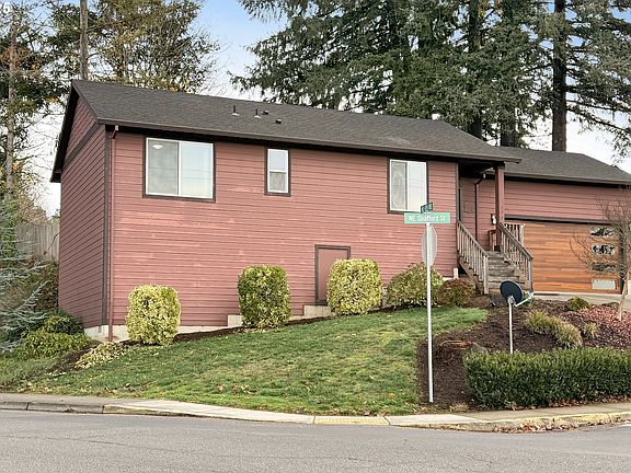 Welcome to this well-kept, one-level ranch-style home built in 2016. Offering 3 bedrooms, 2 full bathrooms, and just under 1,200 sq ft, this home sits on a spacious corner lot in the heart of Estacada. The oversized 2-car garage features high ceilings, a newer garage door, and room for storage, a workbench, plus extra parking along the side of the driveway.Step inside to an open-concept living and kitchen area filled with natural light. The engineered wood floors, high ceilings, and solid-surface countertops give the space a warm and modern feel. The kitchen offers an eat-in bar, stainless steel appliances, a pantry, beautiful cabinetry, and plenty of storage. (Washer and dryer included.)All bedrooms are nicely sized with carpet and blinds. The front bedroom includes a generous closet, and the gun safe may stay with the right offer. The second bedroom and the primary suite both include large walk-in closets. The hall bathroom is conveniently located, while the primary suite enjoys its own private full bath.Outside, enjoy a huge fully fenced backyard with a partially covered patio directly off the dining area—ideal for year-round grilling and outdoor living. The home is equipped with an energy-efficient heat pump to keep things warm in the winter and air-conditioned comfort during the summer.This Estacada home for sale is located off 6th and Shafford, only a short walk to Estacada High School, Estacada Middle School, Clackamas River Elementary, and downtown Estacada shops, restaurants, parks, and local services. A great location paired with a well-designed floor plan makes this property an excellent choice for anyone seeking move-in-ready living in one of Estacada’s most convenient neighborhoods. Could potentially finance home with either Conventional, FHA, VA or Zero Down USDA financing. Ask for details. Call for a private tour today.