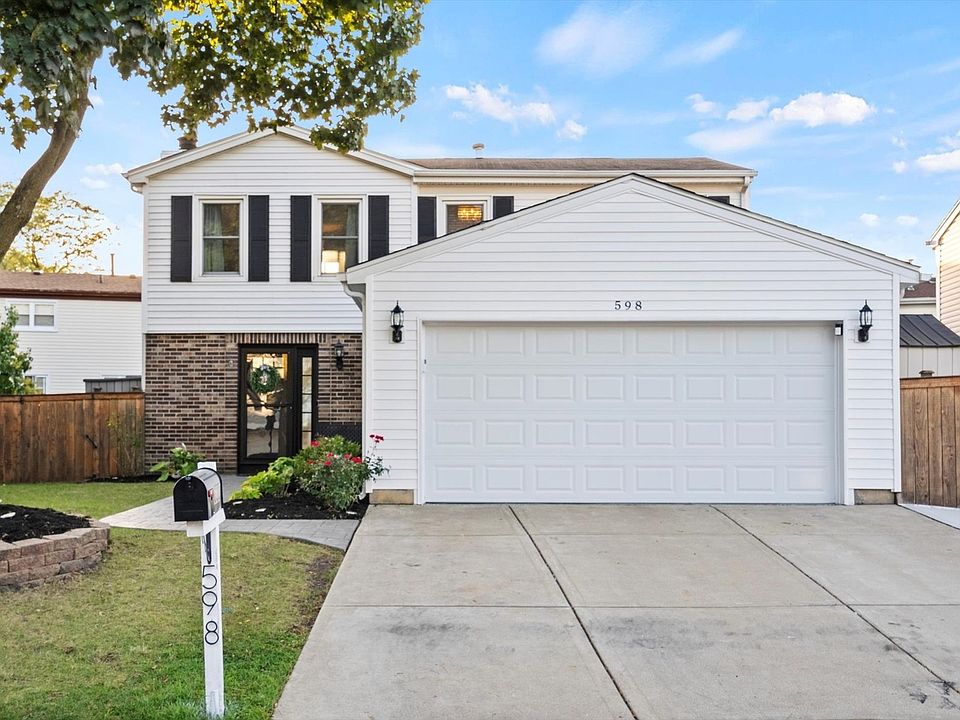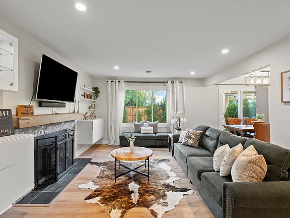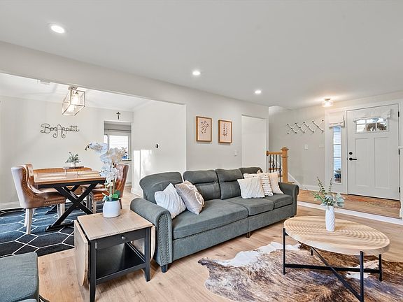 Welcome to this stunning, fully remodeled 2-story home featuring 3 bedrooms and 1.1 bathrooms. The open-concept layout showcases vinyl flooring throughout and a beautifully crafted hardwood staircase. The heart of this home is the exquisite kitchen, boasting a large island with ample seating, modern white shaker cabinets, quartz countertops, and stainless steel appliances. Abundant natural light fills the space, highlighting the stylish, contemporary light fixtures and sliding glass doors leading to the side patio. The seamless flow continues into the elegant dining room, which opens to a cozy living room featuring a wood-burning fireplace, perfect for warming the main level during colder months. Upstairs, you'll find all three bedrooms, each offering comfort and privacy, along with a full-size bathroom. What truly sets this home apart is its smart home technology, equipped with a Nest thermostat, Nest smoke detectors, camera keypad, and Wi-Fi garage opener. The heated garage boasts a new epoxy floor. Step outside to the fully fenced backyard, where you'll find a stamped concrete patio, perfect for outdoor entertaining and relaxation. Additionally, the property features French drains in the backyard, new extended driveway for 3 cars, a new furnace, and newer windows, making this residence truly move-in ready. Don't miss out on this incredible opportunity to own a completely renovated, meticulously designed home!