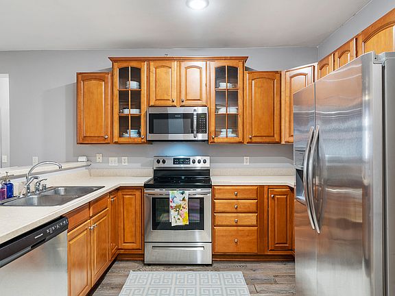 - Features: Kitchen Island, Pantry, Wood Cabinets, Solid Surface Counters, Luxury Vinyl Flooring