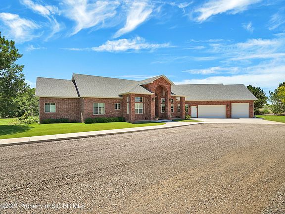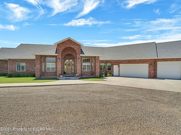 Gorgeous one of a kind property in Kirtland!  From the moment you enter the private gate, you'll fall in love with all this property has to offer.   This beautiful brick home has a grand entrance with a custom door and a large entry way with a beautiful chandelier.  Walking into the living space, you'll immediately be captivated by the view of the spring fed pond out of the back windows of the living room.      You won't lack for storage space in this massive kitchen area!  The custom kitchen cabinets are extraordinary with beautiful granite counter tops.  With a breakfast nook and bar, it's open to the family room and back patio area, making it the perfect area for large gatherings and entertaining.  The master bedroom is large and also has a beautiful view of the pond.  The master bath includes a separate shower, a large tub and plenty of counter space with two sinks.  There is another master suite off of the family room with it's own private bath.   There are two other bedrooms, one of which is the perfect home office with French doors right off the foyer of the home.  Other amenities include high ceilings, radiant in-floor heat,  2 refrigerated air units, water softener, central vacuum, large laundry and mud room and an oversized 3 car garage.  The outdoors is simply amazing with manicured lawns with sprinkler systems, fruit trees, a dog run, a fenced side yard, and of course the year round pond featuring two lovely swans and turtles.   The land has pipe fencing and includes an RV area with a septic, propane and electricity.   The total acreage is approximately 14.16 acres and will be verified with a final survey that is in process.