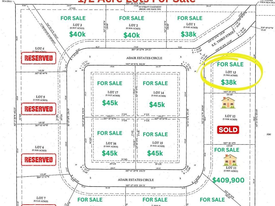 LOT #13. Discover your perfect homesite in the newly developed Adair Estates, a limited community featuring just 17 exclusive half-acre lots. NO HOA! With utility infrastructure already in place, water and electricity are readily available, making it easy to start building your dream home. Enjoy the tranquility and space of a rural setting while being part of a thoughtfully planned neighborhood. Don’t miss this rare opportunity to secure your spot in Adair Estates. State will be paving road.