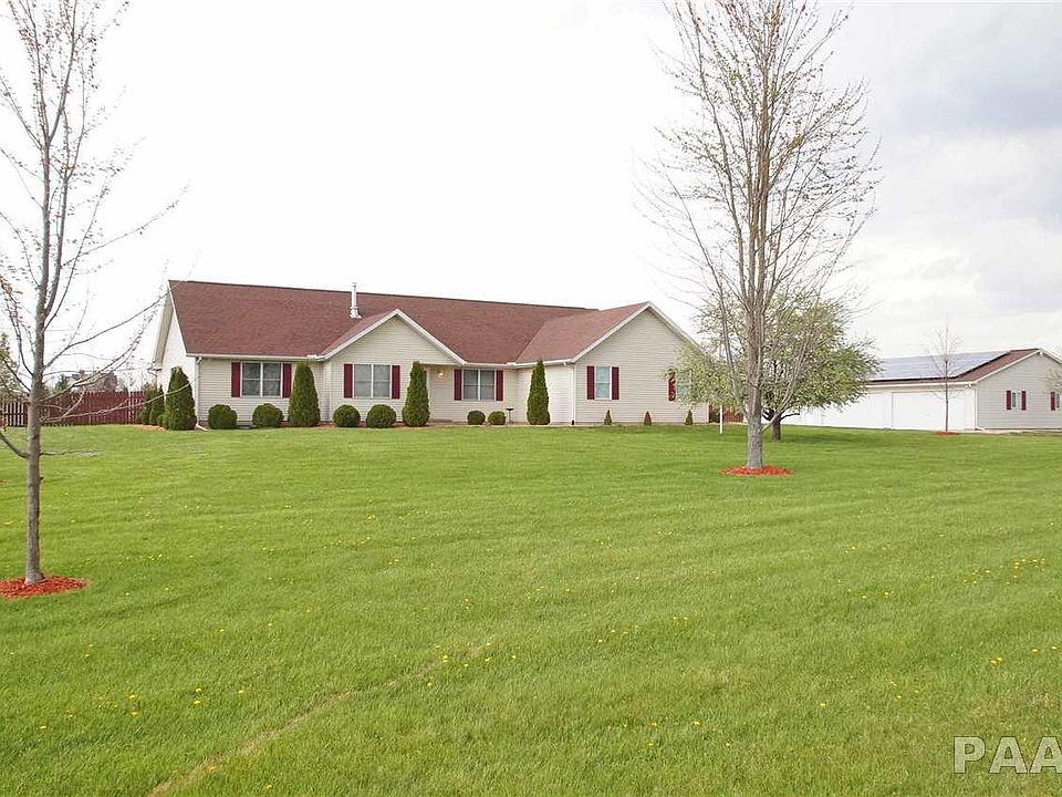 Pride of ownership shows in this ENERGY EFFICIENT 4BR, 2full, 2half bath ranch w/ over 4000 finished sq ft sitting on over 5 acres! Full finished basement includes 30x15 Rec Rm w/ wet bar, 20x15 FR, exercise room & newly remodeled 1/2 BA. New carpet in all 4 BR's, gorgeous hardwood floors in LR & formal DR. Fully applianced kitchen w/ french doors leading to 2 tier deck. 2 stall attached garage plus 60x36 outbuilding & 2 additional sheds. Geothermal only 5 years old, solar panels, very cheap utilities! Fully functioning greenhouse, whole house generator. Horses Allowed.