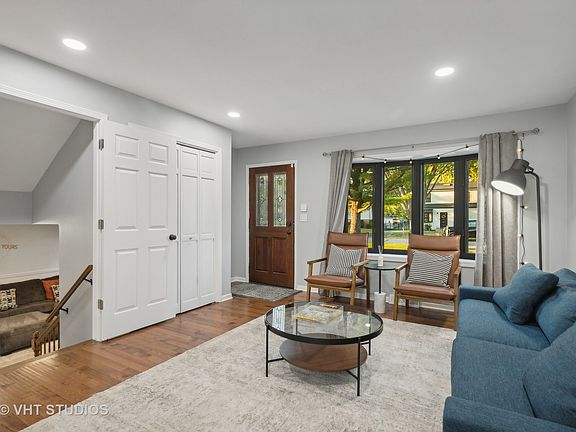 Inviting, well-maintained 3 bed/2 bath split-level with stylish updates throughout. Open kitchen with stainless appliances (new fridge) and breakfast bar overlooking a spacious yard with a brick paver patio. Cozy living room with modern lighting, plus an updated bath upstairs. Lower level features a generous family room, new full bath, and finished laundry. Spacious heated 21x30 tandem garage with room for 4 cars, offering versatility for vehicle storage or a potential man cave setup. Perfect for car enthusiasts or those looking to create the ultimate retreat, this space combines functionality and comfort. Additional home features include smart tech (Ring), new furnace, and more. Close to parks, schools, and easy highway access-perfect for a connected, convenient lifestyle.