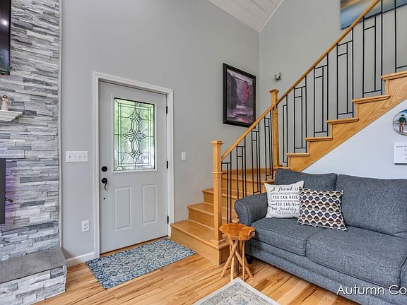 Step into your own Up North retreat! This stunning custom-built home offers soaring cathedral ceilings, a dramatic wall of windows filling the space with natural light, and rich hickory floors throughout the main level. The entire upper-level loft is a private owners suite with its own full bathroom and a private balcony the perfect place to enjoy peaceful views of nature and the nearby lake through every season. The walkout lower level doubles as an entertainment haven with a built-in bar, space for a game table or home gym, and sliding doors leading to the backyard. Outside, enjoy beautiful landscaping, a large pole barn with oversized doors for all your toys, plus two additional large storage sheds and your own private dock on Croton Pond just steps away. Spend your days boating, tubing, swimming, or casting a line for trophy-worthy catches on this 1,200-acre all-sports lake. And when it's time to head out, you're conveniently located near US-131 and just a short drive to Grand Rapids ? giving you the perfect balance of peaceful retreat and city access.