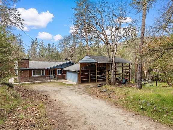 An ideal location with room to roam! Quaint retro home on 4.79 acres in Jacksonville. 3 bed + 2 bath 1496 Sqft of country living. Home features living room, kitchen with lots of storage, and dining room with 2 greenhouse windows. Covered patio. Good well feeds a backup 1000 gallon storage tank. The mix of trees and meadow clearings makes for a gorgeous walk down to the seasonal creek that runs through the property. Small two stall barn currently used as a chicken coop and wood storage. BLM land on two sides. This is a one-of-a-kind property to enjoy with amazing views and a lot of privacy.