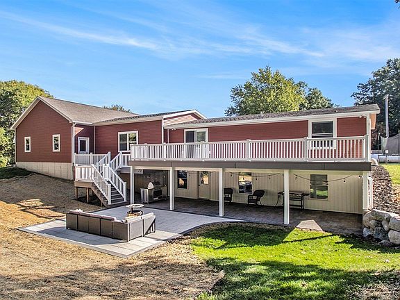 This 4-bedroom 2-bathroom home has grown with the family that built it and is well thought out with tremendous utility, versatility, and features. Originally constructed by the builder/owner as a modular on a full walk-out basement, the house was expanded in 2017 doubling the size to include a massive living room with custom built full length cabinets, in-floor heat, and high ceilings. Oak cabinets, custom doors, and tasteful features add class and character throughout. The oversized 31'x37' garage features in floor heat, hot and cold water plumbed to the utility sink, a mud room, floor drain, and space for two full-sized vehicles as well as ALL the toys. Out back, the main level 63'x11' deck is a perfect spot to wind down overlooking the back yard. Below this deck, a poured and covered patio and additional patio space offers year-round enjoyment and a great home for the smoker or grill, a solo stove, and lots of fun nights! Sells with appliances and yard shed that was new in 2024. The side lot has ample parking space for overflow vehicles, a semi, future pole barn pad, and has electricity run to it.