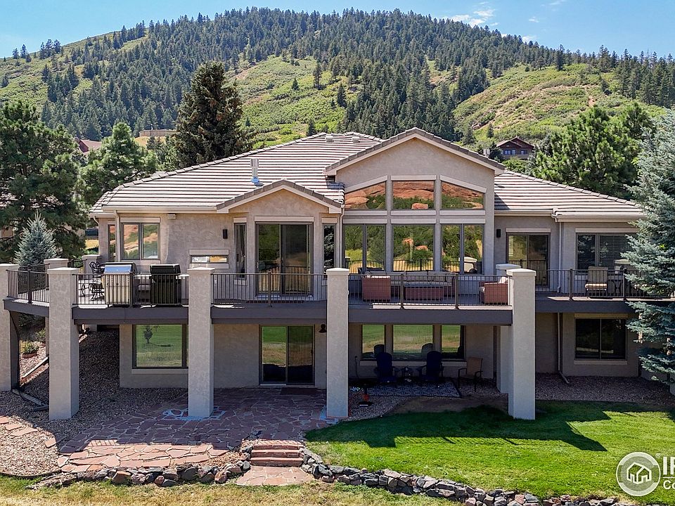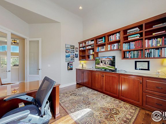 Located on the prestigious Arrowhead Golf Course, this stunning home offers breathtaking views! Step into the oversized great room featuring a cozy gas log fireplace, hand-scraped engineered hardwood floors, built-in shelving, and expansive windows that perfectly frame the scenic golf course and red rock vistas. The updated kitchen is a chef's dream, equipped with premium Thermador appliances, slab granite countertops, and a tile backsplash. Just off the kitchen, a new expanded composite deck-positioned on the east side of the home-offers a peaceful evening retreat overlooking the fairway. Entertain in style in the formal dining room, which includes a built-in sideboard with a slab granite top and elegant glass-front cabinetry. The study is outfitted with custom built-in bookshelves and large windows that fill the space with natural light. The expansive primary suite is a true sanctuary, showcasing stunning views, gas fireplace, dual walk-in closets, and a newly remodeled spa-like bathroom complete with a freestanding tub, frameless glass shower, and a heated towel bar. A newly updated guest bathroom with a quartz-topped vanity serves the main floor, along with a secondary bedroom located on the opposite side of the home-perfect for privacy-featuring its own brand-new 3/4 bath. The spacious main floor laundry room includes built-in cabinetry, a utility sink, and washer/dryer. Downstairs, the walkout level is designed for entertaining. The family/recreation room features a fully equipped wet bar with a large wine refrigerator, granite countertops, tile backsplash, and even includes the pool table and theater seating! A secondary bedroom on this level offers a great option for a home office, while a large workout/flex space provides endless possibilities. Two additional bedrooms share a beautifully remodeled full bath. There is a flagstone patio with a dry under system for those rainy days. The oversized 3-car garage provides ample space for vehicles, gear, and toys.