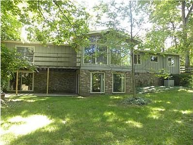 The feel of a gated community. Price reflects needed updates to make this home really cool. Check out rear photo, this home is MUCH larger than it appears! Floor to ceiling windows, vaulted ceilings, hardwood floors, generous sized master bedroom, lower level w/rec room, workbench & walkout to patio area. WONDERFUL LOT