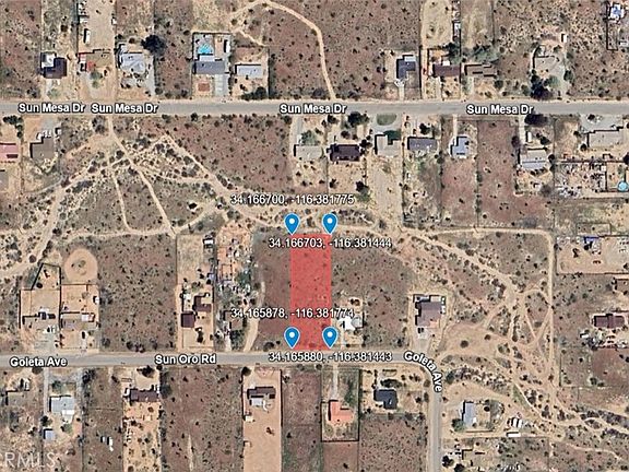 .69 acres zoned Residential Vacant Land ready for your vision. Land parcel identified by APN:0598-092-35-0000. No situs address assigned by county; address shown is for MLS input only. GPS coordinates: 34.166290, -116.381608. Buyer to verify zoning, permitted uses, and utility availability.