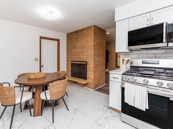Pass-through fireplaceNew appliancesLarge galley-style kitchenCorner lot