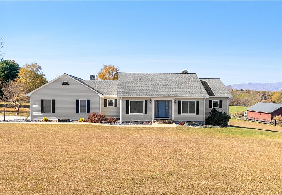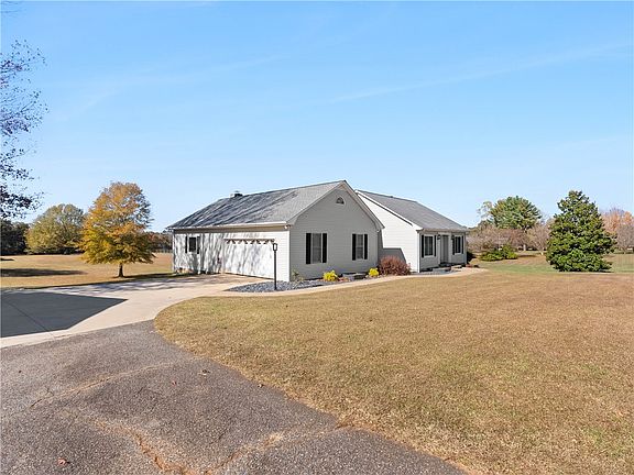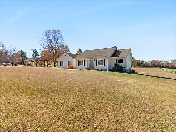 Rare mountain-view retreat on 5.09 acres offers a perfect blend of rustic charm and modern comfort. This 3-bedroom, 2-bathroom home centers around a cozy great room crowned by a stone wood-burning fireplace, with a chef-friendly kitchen that features a breakfast area,stainless steel appliances, granite countertops, and a decorative backsplash and a walk-in pantry with custom shelving. Entertain in the formal dining room, and enjoy easy daily living on durable luxury vinyl plank flooring throughout the main areas. The split-bedroom layout places two guest bedrooms and a full bath on one side, while the spacious master suite on the opposite wing treats you to a secondary fireplace, an en-suite bath with double vanity, a jetted tub, a separate shower, dual walk-in closets, and direct access to the back deck. A large laundry room with cabinetry add practical elegance. An attic fan enhances comfort, while a private back deck delivers stunning mountain views for outdoor gatherings. Storage and parking are abundant with an attached 2-car garage, a 2-car carport with a concrete pad, a detached 2-car garage with power, additional 2-car covered parking with concrete pad, and a large outbuilding with a garage door. The expansive acreage is ideal for equestrians or a small farm. Conveniently close to shopping and dining—about 12 minutes to Landrum, 25 minutes to GSP, BMW, and Spartanburg, and around 20 minutes to Greer