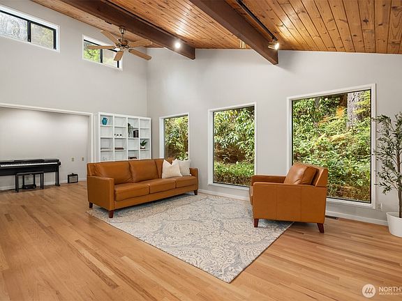 Welcome to this beautifully updated Bainbridge Island gem where timeless craftsmanship meets modern comfort. Soaring vaulted cedar ceilings create a warm, inviting atmosphere filled with natural light, while thoughtful updates throughout the home blend style and function seamlessly. The spacious, open living area flows effortlessly into a refreshed kitchen and dining space, perfect for gatherings or quiet evenings in. Enjoy the rich natural textures of wood and stone, complemented by fresh finishes and a harmonious indoor-outdoor connection. A dedicated workshop offers the ideal space for creative projects, hobbies, or extra storage — a rare find on the island. Set amid lush surroundings near Lynwood Center’s beloved