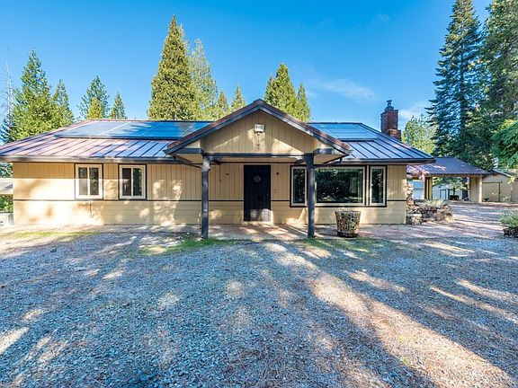 Don't Miss This Hidden Gem. Over 5 acres of primarily level, tree-lined, majestic property with a home that was built by a local mill owner well known in the area during his time. Sawmill owner, Glenn Oviatt used the best lumber to build his own private residence. The local Elementary school (K-8) is located very close by. The town of Somerset is situated minutes from the Fair Play, El Dorado County wine-country destinations. This property has so many options with plenty of open spaces, extra storage sheds, an additional detached drive-through garage, and a huge covered RV pad. Short summary: 3-bedroom 2-bath home offers an oversized attached 2-car garage/workshop (approx. 950 sq ft ), covered RV Parking, a detached garage (approx. 720 sq ft), and another outdoor workshop (416 sq ft). Equipped with a the solar system, and a 13,000-watt backup generator.