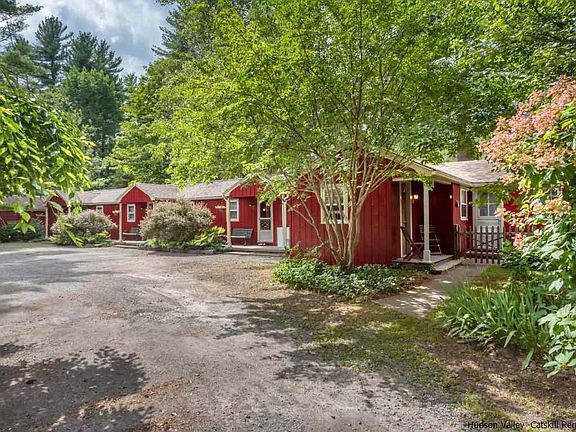 Busy, prime location in the middle of Catskill State Park, one mile from Phoenicia's Main Street for restaurants and shopping, and a short walk to the Esopus Creek for swimming, fishing, and tubing. A well-maintained successfully-operated four-season business which has been in continuous operation for over 70 years. This park-like, 14-unit compound is situated in the high-peaks of the Catskill Mountains, surrounded by world-famous hiking, state parks, lakes, the Ashokan Reservoir, trout fishing on the Esopus, and equidistant between Belleayre and Hunter mountains for skiing, riding, and snow tubing. Property consists of two parcels: the stylish and spacious owners' quarters with large laundry facility, three bedrooms, two full baths, and huge kitchen with high ceilings. Additionally, two apartments on second floor on .24 acres. The second parcel has 12 units (5 motel, 6 cottages, and one suite) on 1.16 acres. The 6 cottages include studios, one bedrooms, and a two bedroom. An 1,100 square-foot, brick garage on premises could easily transform into a venue to hold small weddings and events which are in high demand, and an opportunity for additional revenue. Owners have substantial repeat business with 4.5 stars on TripAdvisor and Yelp.