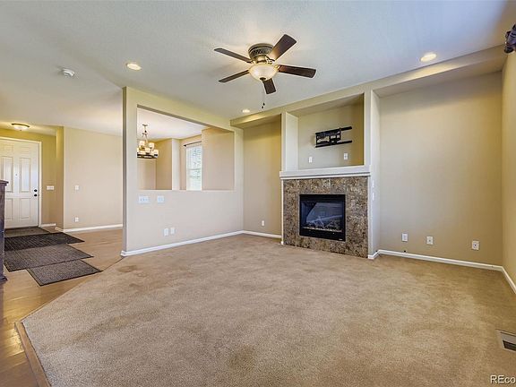 Fantastic 2-Story with Walk-Out Basement Backing to Open Space and Mountain Views! This spacious 2-story home offers an open-concept floor plan designed for modern living with 3 bedrooms and 3 baths. The family room features a tiled gas fireplace and flows seamlessly into the kitchen, complete with low-maintenance laminate flooring, an island, 42" maple cabinets, dual ovens, and an oversized pantry. A separate dining area makes entertaining easy. Upstairs, a large loft provides flexible space for work or play. Two generously sized bedrooms share a full bath, while the primary suite offers a private full bath, custom walk-in closet, and convenient laundry room with built-in shelving. The unfinished walk-out basement has 888 square feet with carpet and is ready to become your dream space perfect for a rec room, home theater, or storage. Step outside to a low-maintenance backyard with a covered deck off the kitchen and covered patio outside the walk-out basement. The backyard also features durable Astroturf, where you can relax and enjoy year-round greenery without the hassle. 2 car attached garage. Enjoy access to fantastic community amenities including a clubhouse, pool, playground, and the YMCA Rec Center. Located in the sought-after Southlands area, you'll love being close to open spaces, trails, shopping, dining, and major routes for an easy commute. Washer/dryer hookups. Pets are ok with landlord approval. There is a $350 Pet deposit (1 pet or $500 for 2 pets). No smoking of any kind allowed inside home. Tenants are not allowed to grow marijuana anywhere on the property. The application is for a credit/criminal/eviction report and it is $48 per person (anyone 18 years and older). We do our own background checks, so we do not accept Zillow rental reports.