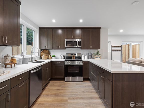 Don’t miss your chance on the lowest-priced standalone home in all of West Seattle! This charming residence blends modern comfort with thoughtful design, featuring stainless steel appliances, quartz countertops, and beautifully crafted wood paneling. Vaulted ceilings and large windows create a bright, open feel, while energy-efficient heating and cooling keep you comfortable year-round. Take advantage of your own private fully fenced yard, ideal for relaxing or hosting guests. Plus enjoy the convenience of a dedicated off-street parking space. Tucked between Longfellow Creek and green space, this home offers a quiet retreat just 10 minutes from downtown Seattle. A rare find at this price, it’s the perfect opportunity into homeownership.