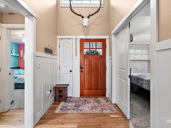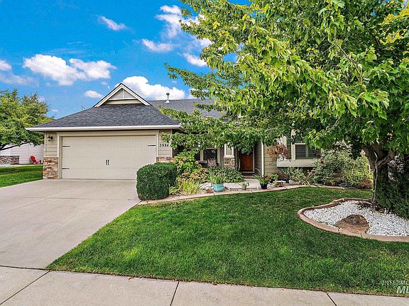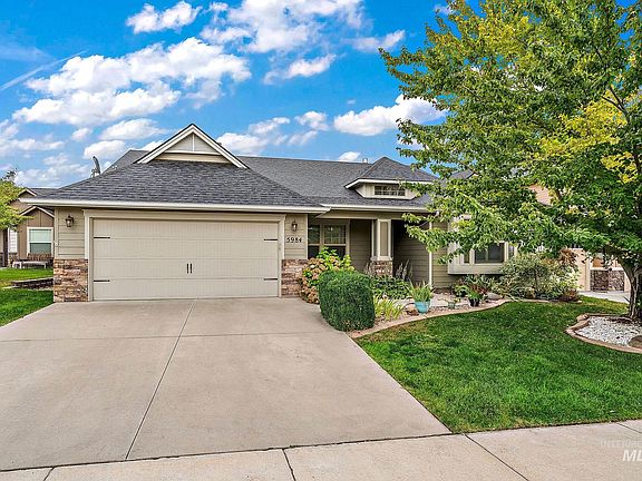 This well maintained, custom built home by Scott Tutt Building Co. is thoughtfully laid out with a 3 bedroom split floorplan, an office, vaulted ceilings, hardwood flooring, a large kitchen island, garden space, and a large patio. Enjoy surround sound in the main living area. Main suite has a walk in shower, tub, water closet with a bidet, walk in closet, and a separate doorway to a private patio out back. Mature landscaping adds the finishing touches to this home and provides shade facing west in the evenings on the front porch. There is a finished attic above the garage with ample storage too! Carpets were replaced and the hardwood flooring was refinished in 2023. New exterior paint in 2022. Located within walking distance of Boise Ranch Golf Course, Lake Hazel Elementary and Lake Hazel Middle schools, bike to Discovery Park, and enjoy close proximity to shopping and more. This home is beautiful, bright, and ready for its new owners!