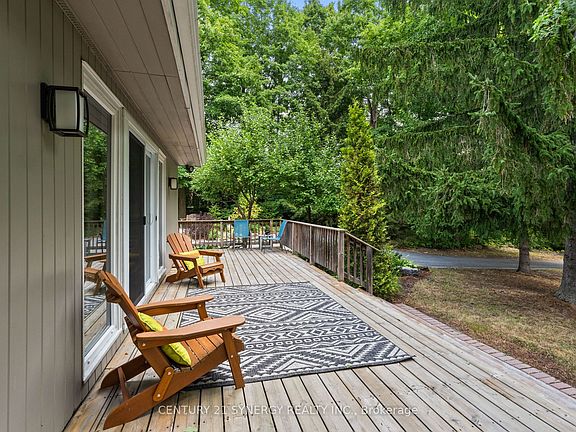 Picturesque drivewayCathedral ceilingsCozy wood fireplacePartially wrap-around deckRenovated kitchenRenovated bathroomBalcony overlooking the backyard