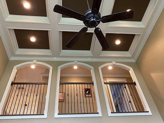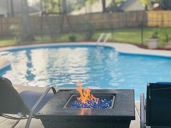 This craftsman home boasts massive 2.5 story ceilings, hard wood floors, oversized doors, and cased windows throughout. Home is located on a large lot in the Pace school district. Outside you will find a relaxing screened patio with a gas fireplace and bose speakers. An in-ground salt system pool is just steps away. Also outside, is a well for watering the yard. Enjoy afternoons cooking meals while the family hangs around the kitchen in the beautiful vaulted sunroom. Split floor plan with the master bedroom downstairs and three bedrooms upstairs with a balcony overlooking. Study/playroom is an added bonus. *blue playhouse will be moved off property. Does not go with home contact