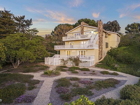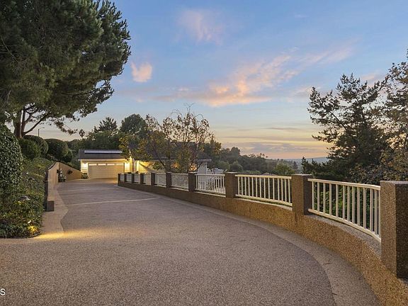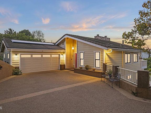 Perched in the Serene Terra Bella Estates neighborhood on a sprawling 1-acre lot, this 3,560 sq ft, 4-bedroom, 4-bathroom architectural stunner offers breathtaking vistas of Camarillo from every room and all three expansive private balconies--your daily dose of coastal-inspired tranquility. With paid solar panels eliminating electricity bills and a Pebble Stone driveway welcoming you home in style, energy efficiency meets effortless curb appeal in this haven of modern comforts and natural beauty. Step inside to vaulted ceilings adorned with exposed natural wood beams and elegant oak woodwork framing every window and door, complemented by newer dual-pane glass for whisper-quiet serenity. Recessed lighting bathes the open living spaces in a warm glow, while crown molding and newer stair railings add refined touches throughout. The heart of the home shines with Acacia engineered hardwood floors flowing seamlessly from the living room to the gourmet kitchen, outfitted with a premium KitchenAid oven and fridge, a built-in wine fridge, a whole-house intercom for seamless communication.Retreat to the primary suite, a true sanctuary featuring an elegant bedroom with a marble accented fireplace and an ample bathroom with mercerized tile floors, a dual-head, upgraded shower with quilted tile walls, a sunken spa tub, a large vanity, and separate makeup area complete with its own sink. Unwind by the versatile wood-and-gas fireplace, slip through French doors to your balcony, or organize in the cedar-paneled walk-in closet. Nearby, see the office (or bedroom) with adjacent full bathroom complete with travertine floors. On the lower level, discover two bedrooms, one with travertine lined fireplace and ceiling fan, which share a travertine-enhanced full bath --perfect for wellness or work-from-home vibes.Outside, the magic continues: Fire up the BBQ on a balcony decked in tumbled marble, then wander to your lush backyard oasis. Privacy abounds thanks to carefully designed landscaping and mature trees, while a dedicated garden and a bounty of fruit trees--apple, orange, lime, tangerine, avocado, and lemon--promises fresh harvests year-round. Stay cool with central AC, cozy up by one of three fireplaces, and rest easy with ADT security, a newer water heater, and furnace--all move-in ready for those craving luxury living with low-maintenance perks.This is more than a home; it's your elevated escape!