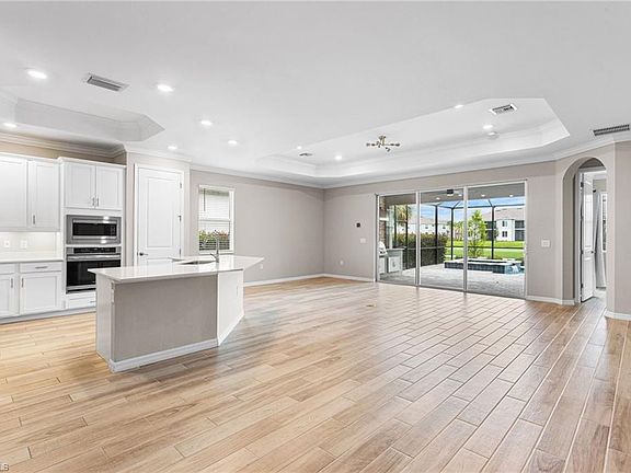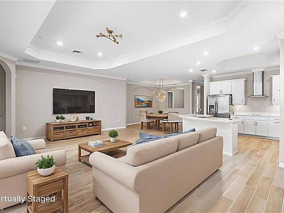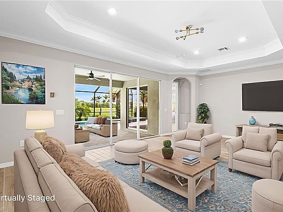 POPULAR ISABELLA MODEL WITH GOLF MEMBERSHIP AND ASSUMABLE 3% INTEREST RATE WITH LENDER APPROVAL! Welcome to your slice of paradise at The National Golf & Country Club in Ave Maria—where luxury, lifestyle, and flexibility come together. Whether you're looking to purchase, rent seasonally, or settle in long-term, this stunning 4-bedroom, 2-bath home delivers the perfect blend of comfort, elegance, and resort-style amenities. Nestled right on the 10th tee with panoramic golf course and lake views, the home offers an open, airy layout ideal for both entertaining and everyday living. The modern kitchen is a showstopper with quartz countertops, stainless steel appliances, and an oversized island that seats four—perfect for casual dining or after-school homework. Large sliding glass doors lead out to a spacious, screened lanai where a private pool, spa, and full outdoor kitchen with built-in grill and mini fridge make every day feel like a vacation. Retreat to the serene primary suite with dual walk-in closets, a luxurious soaking tub, walk-in shower, and double vanity. Additional upgrades like crown molding, French doors, and an epoxy-coated garage floor elevate the home’s functionality and style. Life at The National means more than just a beautiful home—it means access to a vibrant, amenity-rich community. Enjoy a round of golf, relax at the resort-style pool with a Tiki Bar, or dine at one of the on-site restaurants. Keep active with a state-of-the-art fitness center, tennis, pickleball, and bocce courts, or enjoy peaceful walks along the community’s scenic trails. Whether you're investing, relocating, or planning your seasonal getaway, this home is the perfect opportunity to experience Ave Maria living at its finest