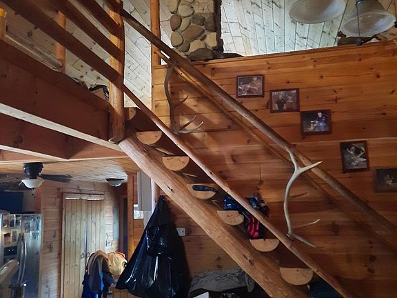 Charming A-Frame Retreat on 5 Acres in Lewiston, MI. Nestled on 5 picturesque acres, this charming A-frame home was beautifully remodeled in 2003. The property features 1 cozy bedroom and a loft upstairs, perfect for additional sleeping space or a home office. The open-concept living room, kitchen, and dining area offer a warm, inviting atmosphere. You’ll also find a convenient laundry area. Plus, a spacious 20x30 pole barn is perfect for storage or hobbies.
