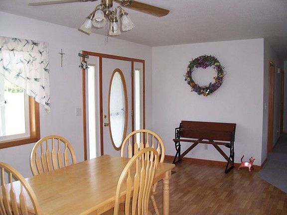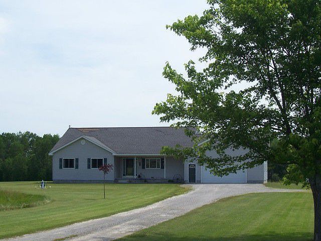 Sprawling contemporary ranch w/wonderful floor plan. Extra wide hallways, oak kitchen, walkout from breakfast nook, new Bruce Oak Hardwood flooring in kitchen, dining, & hall, open living room. MBR suite w/walk-in closet & 3/4 bath, formal DR. Lower level w/recreation rm & FR w/beautiful wood bar, TV/Movie station, laundry area & storage room. New roof 2011. Excellent pole bldg (24x32). Nicely landscaped, wildlife galore, great hunting. Sellers are providing one year home warranty. Perfect place to call home!