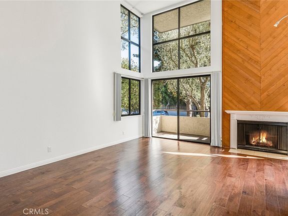 This two-story townhome-like end unit features two bedrooms, 2 bathrooms. Spacious light-filled living room and dining room with soaring ceilings, fireplace, patio off living room. Hardwood floors, carpeting. The kitchen includes a stainless steel refrigerator and stove/range, generous cabinet storage. The first floor has one bedroom with double closets; 3/4 bathroom. The top level features a loft bedroom with lattice, large walk-in closet, full bathroom, and laundry closet with washer/dryer. Home features an energy efficient Daikin unit - for cooling & heating comfort. Subterranean tandem parking for 2 cars. Storage cabinet is located in the community closet. Located in the "heart of the Peninsula", this Peacock Ridge complex is located at the end of the cul-de-sac. Common area entry, a heated pool and spa. Ideal, convenient location near Peninsula Center, shopping, restaurants, schools.