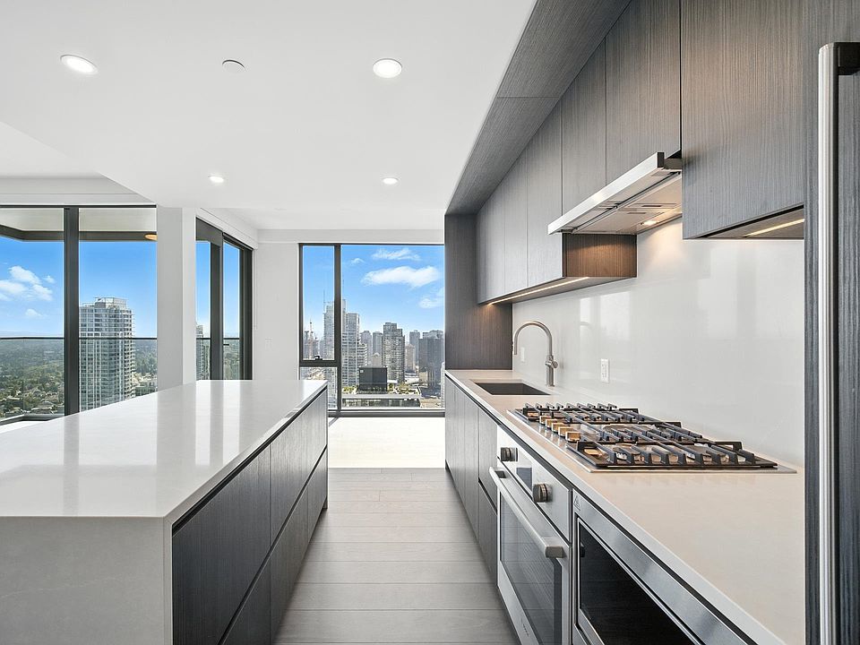 Unobstructed high-level Views Views Views! Brand New never lived in Central Park House by Bosa Properties, Burnaby's most luxurioius landmark building, just steps from Central Park, Metrotown, Crystal Mall, and Patterson SkyTrain Station. This stunning two-bedroom home boasts soaring 9-foot ceilings and offers unobstructed 270-degree panoramic views stretching from the tranquil waters of Deer Lake to the vibrant skyline of Downtown Vancouver, nothern and western Waters. Residents enjoy over 15.000 square feet of five-star amenities, including a grand lobby with 24-hour concierge service, a sky-high swimming pool and whirlpool spa, a state-of-the-art fitness centre, and stylish entertainment lounges on the 17th and 18th floors. Will not disappoint. open house sunday August 24 2-4 pm