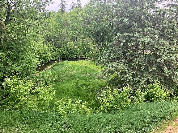 A peaceful 18 acres farmstead with Bluff Creek running through it; on a dead end road with only 1 other home on it.