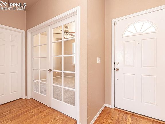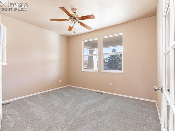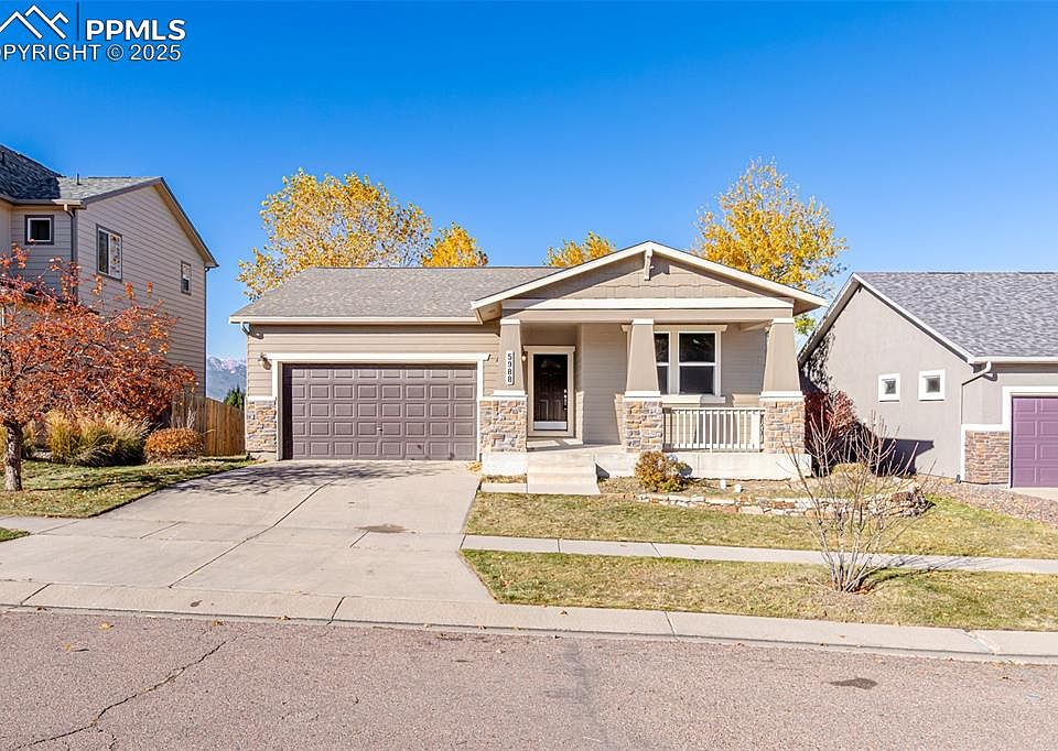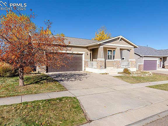 Welcome Home to this charming like new Ranch Style home in the beautiful Cumbre Vista subdivision. This beautiful home has brand new carpet throughout, an open concept floor plan with a fully finished basement and a walkout. Views of Pikes Peak, well established trees throughout the community. Primary bedroom is located on the main floor with a large 5 piece bathroom; soaking tub, walk in shower, two sinks and a walk in closet with new carpet and is cedar lined. There's also an office on the main floor which can be used as another bedroom, playroom, hobby area or home gym. The kitchen is a true delight, featuring an island that offers ample space for meal preparation, all complemented by oak cabinetry with views of the backyard. The adjoining living area also opens to a lovely deck – perfect for enjoying the scenic outdoors. Large backyard. The basement has three bedrooms! The basement is filled with natural light, separate nook perfect for a gaming desk or your home office. You can also access the backyard from them basement. Perks include; Air Conditioning, grand staircase, grand piano, a walking path right next door and lovely neighbors. Located near Powers and Woodman making commuting very easy and tons of shopping, restaurants and the award winning hospital near by.