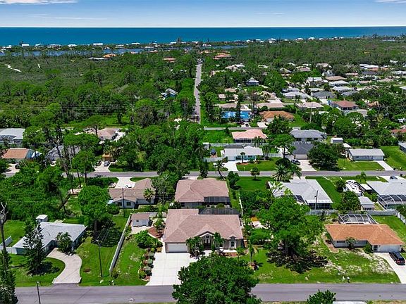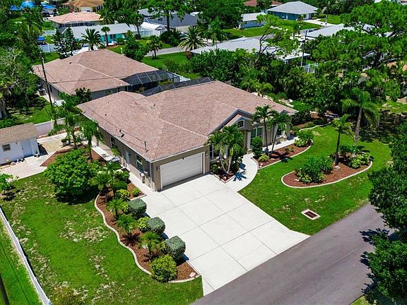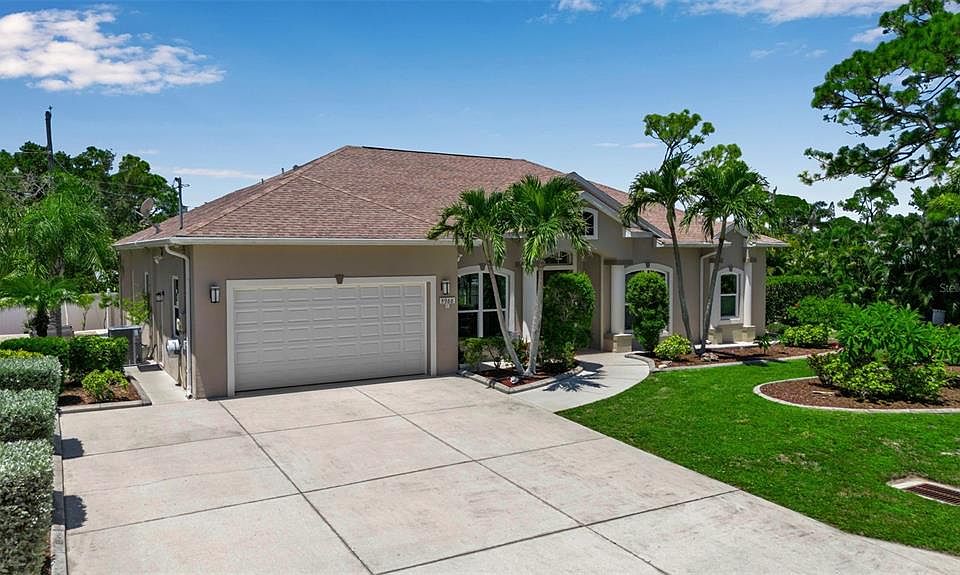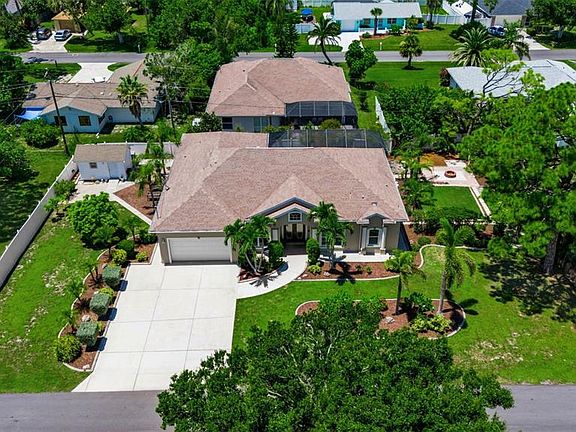 Welcome to this meticulously maintained, custom-built, and recently updated 2,426 sq. ft. home in beautiful Venice, Florida — just 1.5 miles from the Gulf beaches and minutes from charming shops, dining, and recreation. Offering 4 bedrooms and 2 full bathrooms, this home is perfect as a primary residence or a vacation getaway. Enjoy your double lot with lush landscaping and the convenience of having city water and sewer (connected in 2018). From the moment you arrive, you’ll be impressed by the curb appeal — an oversized driveway, fruit trees, rose gardens, and walking paths around the home, all framed by a stately double 8’ front entry door with antique glass, protected by a hurricane-rated screen and portico. Step inside and you’re welcomed by soaring 12’ ceilings in the main living areas, 11’ ceilings in the rest of the home, extensive crown molding, double tray ceilings, and architectural details throughout. Natural light pours in from 17 large PGT hurricane-impact windows, while sound-barrier insulated walls keep the space quiet and serene. The open floor plan flows seamlessly into the gourmet kitchen, recently remodeled with expanded quartz countertops, reconditioned 42” custom cabinets, a stylish backsplash, and all new stainless steel and glass appliances including refrigerator, oven/range, microwave, washer, and dryer. A breakfast nook offers casual dining, while a bar-height counter creates the perfect gathering spot. The split bedroom layout features four bedrooms with three featuring cozy carpeting and one versatile bedroom/den finished with easy-care laminate flooring while 18" porcelain tile on the diagonal enhances the main living areas and bathrooms. One of the guest bathrooms also include a smart bidet toilet that adds an extra touch of modern luxury. The spacious primary suite has direct access to the lanai through 8’ high sliders and features a fully remodeled spa-style bathroom with an oversized glass-enclosed shower clad in Brazilian granite, a soaking tub, new vanities and cabinets, upgraded tile flooring, and two walk-in closets. Outdoor living is at its best here, with an expansive lanai featuring an automated 23.5’ x 11’ screen for shade and comfort. Unwind in the Hot Springs Vanguard 6-person remote-controlled hot tub/spa with a new cover, or enjoy the peaceful backyard with privacy fencing, landscaped seating areas, and a well-maintained storage shed. The home is built for peace of mind with hurricane-rated features, including impact windows, a hurricane-mitigated garage door, and a hurricane-rated screen system. Additional upgrades include a high-capacity 5-ton AC system with warranty until 2035, a reconditioned roof with warranty through 2029, and a Ring security system with five hardwired cameras/lights. Located in one of Venice’s most desirable areas, you’re just minutes from Venice Beach, Historic Downtown Venice, fishing piers, boating, golf courses, and scenic parks. Only two blocks away, you’ll find the South Lemon Bay Preserve, perfect for nature walks and outdoor enjoyment, while the nearby public boat launch at Manasota Beach makes days on the water a breeze. Top-rated Sarasota County schools, medical facilities, shopping, and dining are all close by, making daily life convenient and enjoyable. With every upgrade already complete and a location that offers both coastal charm and everyday convenience, 5988 Viola Road delivers the lifestyle, comfort, and quality you’ve been searching for.